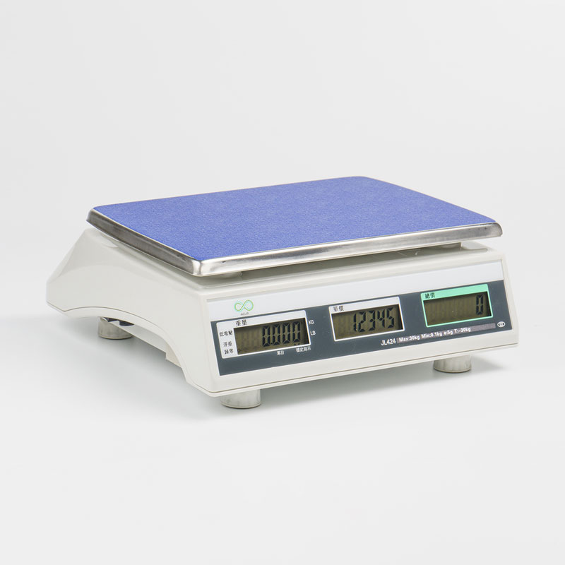 JL424 计价秤提供精确称重、双面显示、多种单位选择,并支援交流电/电池供电,适用于各类零售应用。